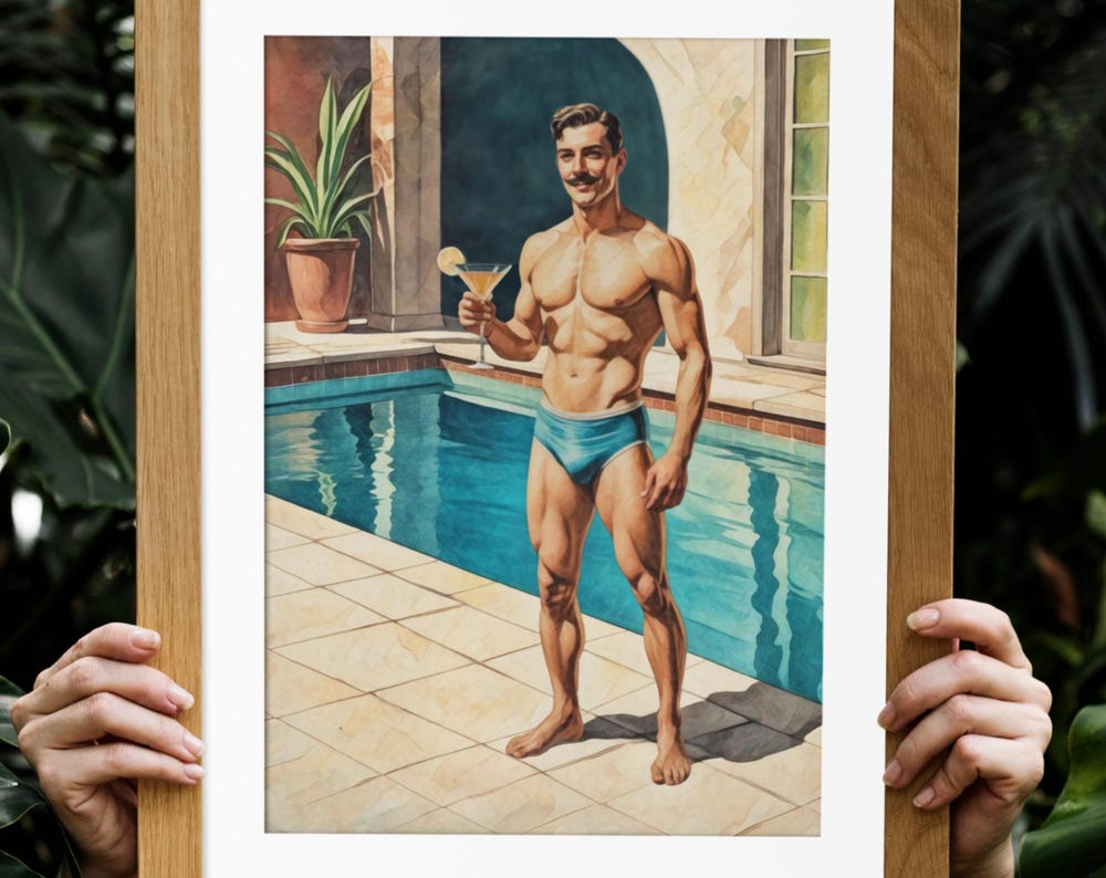 I'm Your Zaddy | Mid-Century Studmuffin | Vintage Hunk with Mustache Poster | Retro Male Pin-Up Art