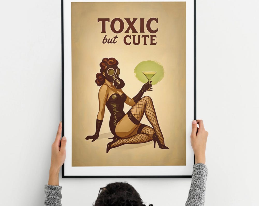 Vintage Pin Up Art Print | Pin-Up with Retro Gas Mask & Radioactive Martini