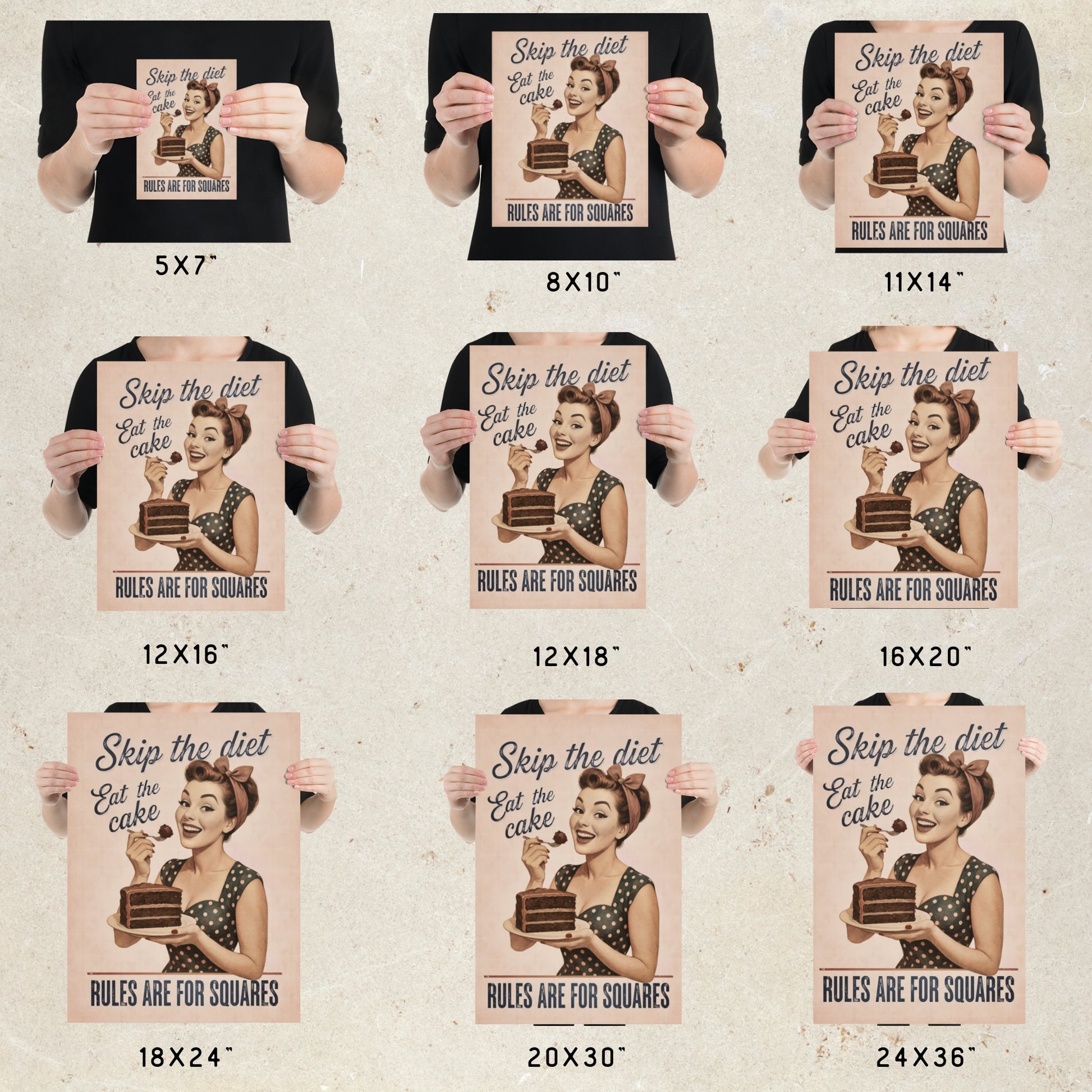 Skip the Diet, Eat the Cake - Vintage Pin-Up Poster | Retro Kitchen Wall Art