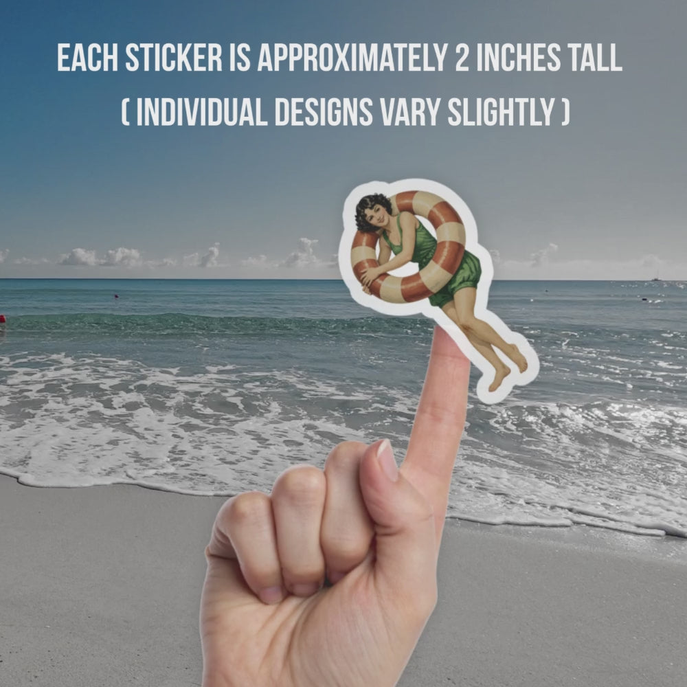 Victorian Pin-Up Sticker Sheet - Vintage Swimmers